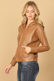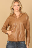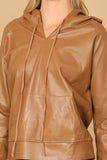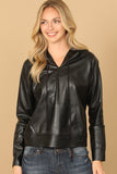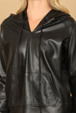 Stay cozy and stylish with our Leather Drawstring Hoodie Top. Crafted from high-quality leather, this top features a drawstring hood that adds a touch of sophistication to your look. Perfect for any occasion, effortlessly elevate your wardrobe with this must-have piece.