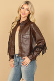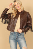 Upgrade your wardrobe with our LEATHER TASSEL JACKET. Made from high-quality leather, this jacket features stylish tassels that add a touch of edginess to any outfit. Stay warm and fashionable with this must-have piece.