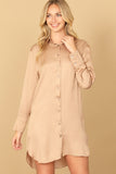 Elevate your wardrobe with our Long Sleeve Collared Button Down Curve Hem Dress. With its stylish design and comfortable fit, this dress is perfect for any occasion. Featuring a collared neckline, button down front, and a flattering curved hem, this dress is both versatile and chic.