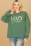 Stay warm and stylish this season with our "Cozy Season" print top! Featuring long sleeves and a unique print, this top is perfect for any occasion. Embrace comfort and fashion with this must-have addition to your wardrobe.