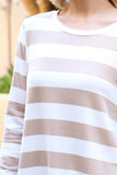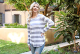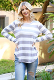 Stay comfy and stylish with this Long Sleeve Dolphin Hem Bold Stripes Top. It's perfect for any casual look and is designed to keep you cozy all day long.
