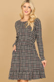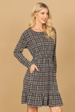 This dress is perfect for any occasion! The long sleeves provide warmth while the plaid pattern adds a touch of style. The ruffled hem adds a playful and feminine touch. Dress it up or down for endless outfit options. Stay comfortable and fashionable with this dress.