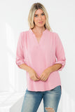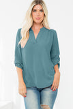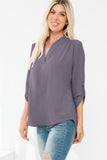 This Notch Neckline 3/4 Folded Sleeve Solid Top is a must-have basic for any wardrobe! It's made from comfy and lightweight fabric for the perfect fit, and features a stylish notch neckline and 3/4 sleeves. Effortlessly elevate your everyday looks with this stylish and versatile top.