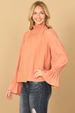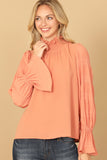 Elevate your style with our Ruffle Turtle Neck Long Bell Sleeve Solid Top. Embrace the elegance of the ruffled neckline and add a touch of playfulness with the bell sleeves. Made of high-quality material, this top offers both comfort and sophistication. Perfect for any occasion.