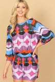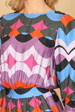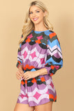 FLOWER GEOMETRIC PRINT OPEN FRONT KIMONO
