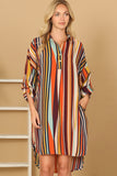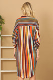 STRIPES PRINT FRINGE OPEN FRONT KIMONO