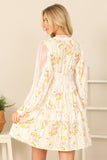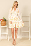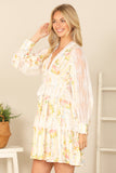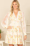 Turn heads in our V-NECK FLORAL DRESS. With a delicate lace detail and long sleeves, you'll feel feminine and flirty. Perfect for any occasion, this dress will make you feel like a blooming flower.