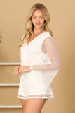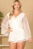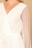 Elevate your style with our V-Neck Long Sleeve Back-Tie Net Romper. This romper features a flattering v-neckline, long sleeves for a chic look, and a back-tie detail for added texture and interest. Perfect for a night out or a special occasion, this romper is a versatile and trendy addition to your wardrobe.