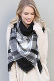 Stay warm and stylish with our Black Gray Blanket Fringed Scarf. Made with a cozy blanket material, this scarf features a fringe detailing for a chic touch. Perfect for any outfit, it's a must-have for the colder months.