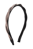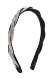 This braided headband features shiny rhinestones that add a touch of glamour to any hairstyle. Made with high-quality materials, it is both durable and stylish. Perfect for special occasions or adding a touch of elegance to everyday looks. Upgrade your hair accessory game with this beautiful, sparkling headband.