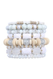 Charm up your look with this fun and versatile bracelet set! With its blend of natural wood and semi-precious stone beads, these layered bracelets are ready to take your outfit to the next level.