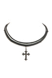 A set of two light-weight choker necklace featuring a hanging cross pendant.