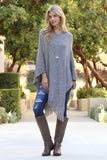 Wrap yourself up in a versatile cold-weather staple with this soft long line poncho. It features an airy silhouette, bat-wing sleeves, and a fringed hem for added detail. Style it with skinny jeans, a blouse and knee-high boots for a chic cool-weather twist.