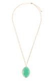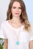 Style a boho chic ensemble with this inlaid natural stone pendant necklaces. The simple chain accents the stone center stone adding a touch of nature-inspired beauty to your look. Pair with a long flowy skirt and sandals for an eye catching look!