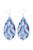 ABSTRACT BLUE VIOLET PRINTED LEATHER TASSEL HOOK EARRINGS