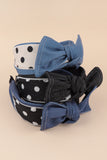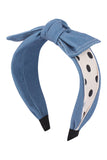 This denim polka dot print knotted ribbon headband is the perfect hair accessory for adding a touch of style to any outfit. Made from high-quality material, it provides both fashion and functionality. The playful polka dot pattern adds a fun and trendy element, while the knotted design keeps hair in place all day. Upgrade your hair game with this must-have accessory.