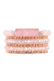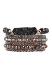 This druzy, rhinestone, rondelle, beads mix stackable bracelet set is perfect for adding a vibrant, sparkly twist to any look! It's the perfect accessory to show off your style with attitude and flair. Stack them up and see where the night takes you!