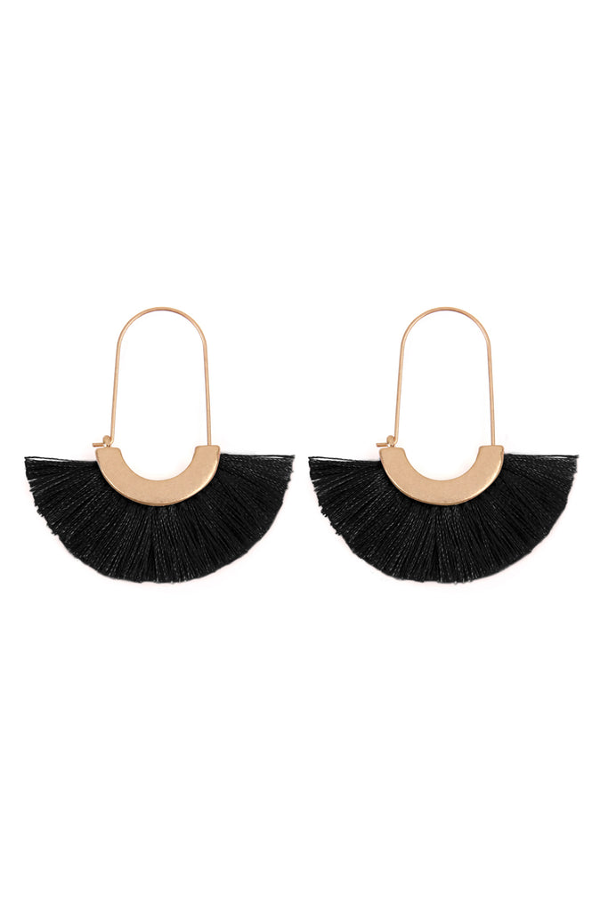 Add breezy, boho chic to your everyday style with these delightful hinge earrings. Pretty tassels in a bold hue fan out beneath these gold-finished earrings, adding a fun flair to any outfit you choose to pair them with. Pair these tassel earrings with anything from flowy skirts to a basic tee-and-distressed jeans for dainty, feminine flair.