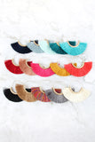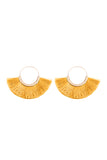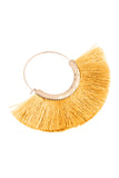 Add breezy, boho-chic to your everyday style with these delightful hinge earrings. Pretty tassels in a bold hue fan out beneath these gold-finished earrings, adding a fun flair to any outfit you choose to pair them with. Pair these tassel earrings with anything from flowy skirts to basic tee-and-distressed jeans for dainty, feminine flair.