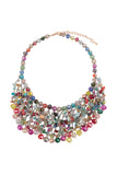 This statement bib necklace is sure to make a unique impression with its striking glass bead design. Complement any outfit with a beautiful and lightweight accessory that is sure to add a personal touch.