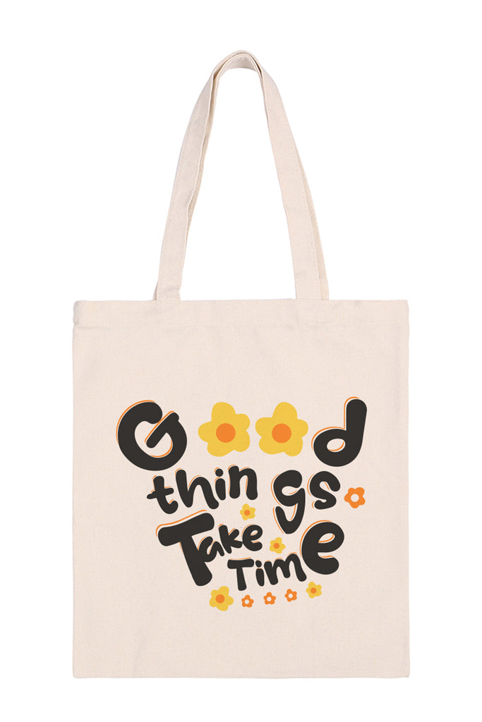 Embrace patience and perseverance with the "Good Things Take Time" minimalist fashion tote bag. Perfectly balanced between style and function, this durable tote carries your essentials while reminding you that success and growth are worth the wait. Its clean, understated design makes it an inspiring accessory for everyday use, encouraging you to stay focused and optimistic on your journey.