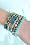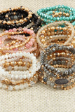 This bracelet will add trendy elegance to your wardrobe. It features multi-colored beads with a genuine druzy as a charm. Easy to slip on and off, to wear solo or stacked!