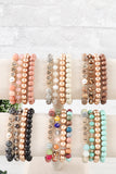 Cute and chic stretch bracelets adorned with multiple beads and a blissful engraved message in gold finished beads. You can mix n' match to create a unique arm candy collection or wear solo.