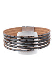 Stylish collection of magnetic lock bracelets featuring unique pendants. The pendant ranges from an open box charm to a detailed base design. Wear these alone or mix n' match along with other accessories for a stylish look.
