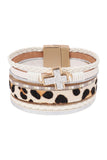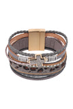 Multi lines of crystal beads, wood and metal bring this set together for extra flair. Three lines of different sizes, light-weight and comfortable for all day. Wear each one solo for a delicate accent or stack them on to make a statement.