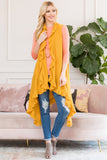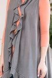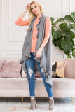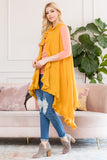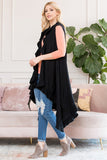Instantly update your go-to casual ensembles with these chic sleeveless cardigans. They feature a ruffled handkerchief hem and open-front waterfall lapels bringing dramatic movement to any ensemble. Layer over a simple long-sleeve tee and jeans to let this layering piece be the focal point of your look for date night!