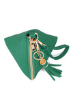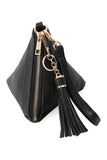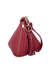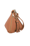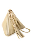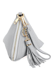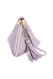 A fun and stylish pyramid-shaped purse perfect to carry minimal items on your everyday outings. An added tassel charm is great to put your keys or work tags. Secure your belongings with its zipper closure.