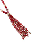 Cute and glam tassel necklace. Adorned with beads all around and layers of beaded tassels.