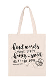 This stylish and minimalist fashion tote bag features a beautiful "Kind Words" print to spread positivity wherever you go. With ample space and sturdy construction, it's perfect for carrying your essentials while staying fashionable and spreading kindness.