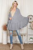 Look stylishly cozy in this chic Knit Ruffle Kimono! Made with solid colored fabrics, this kimono offers an upgrade to any look with its unique ruffles and soft knit texture. Look great and feel comfy!
