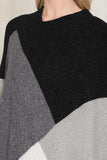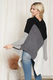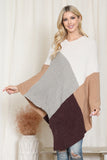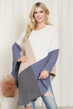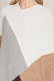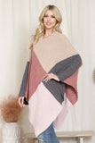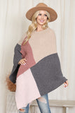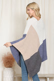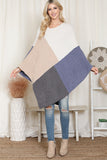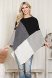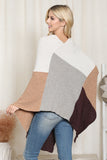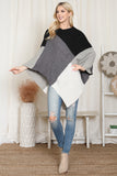 Stay warm and stylish in this knitted multi-color poncho. Its geometric square-shaped design is perfect for adding a modern touch to your winter wardrobe.