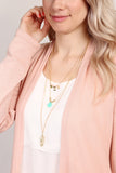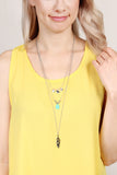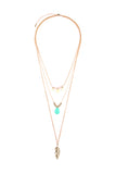 With three ethereal layers, our necklace delicately displays a turquoise teardrop pendant and a nature-inspired leaf pendant.