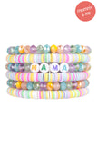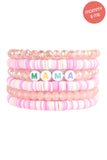 Celebrate the special bond between mother and child with our "MAMA" & "ME" bracelet set. Made with colorful FIMO glass beads, these stackable stretch bracelets are perfect for everyday wear and remind you of the unbreakable bond with your little one. A thoughtful gift for new moms too.