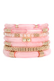 This stackable bracelet is the perfect addition to any outfit. The mix of tubular, CCB, and rondelle beads adds a touch of elegance while the stretch design provides comfort and ease of wear. Mix and match with other bracelets for a unique and stylish look.