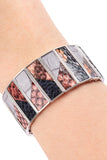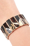 If you love to make a statement then you'll simply this stylish animal print bracelet. A simple stretch-and-pull design ensures a comfortable fit for just about any wrist size. For added oomph, try wearing this piece within a stack.