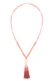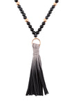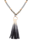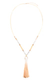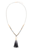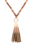 Pretty and with extra flair, these stylish necklaces are sure to add sass to your deep necklines and simple tops. Each is adorned with light-weight tassels and natural stones creating a unique piece.