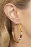 "Add a touch of elegance with our Seed Bead Hoop Earrings. Handcrafted with intricate seed beads, these hoops bring a pop of color to any outfit. Lightweight and chic, they are the perfect addition to elevate your everyday look."
