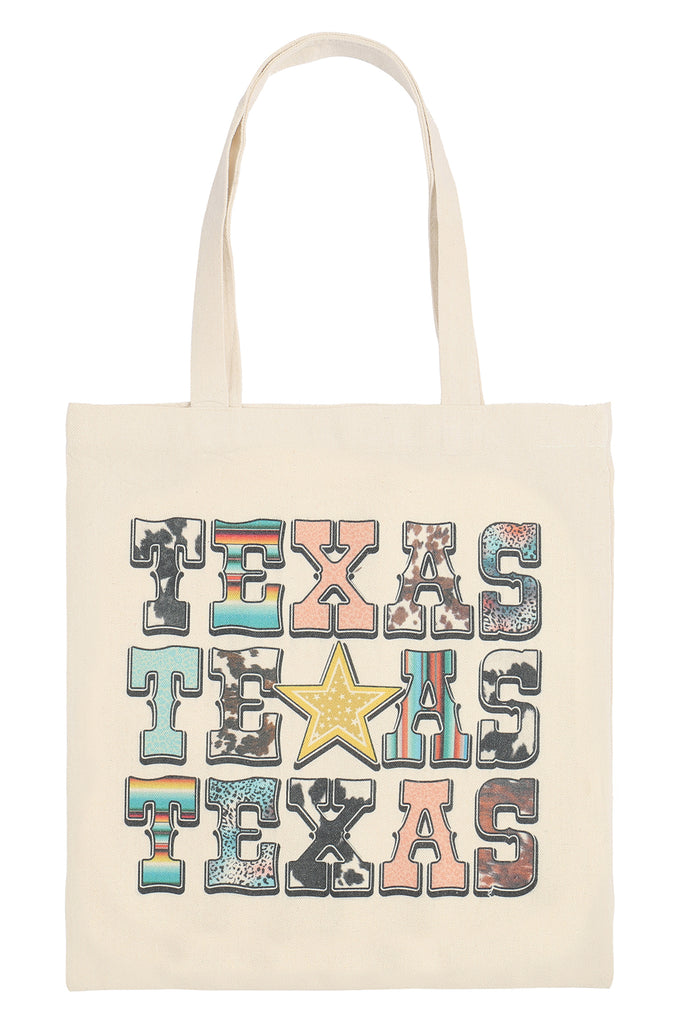 Get ready to show Texas some love with this sassy tote bag! Featuring a playful minimalist print, this bag is perfect for carrying your essentials and expressing your Lone Star State pride!