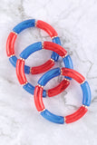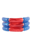 Show your colors and your style with this eye-catching bracelet! Boasting a vibrant mix of red, white, and blue beads held together by a strong string, this tubular bead USA color accent bracelet can add panache to any outfit. Rock your patriotism in eye-catching fashion!