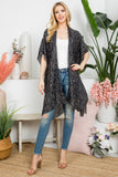 Unleash your inner beach babe with our Wavy Print Open Front Kimono. This flowy kimono features a vibrant wavy print that will add a splash of fun to any outfit. Perfect for layering or as a cover-up, this kimono is a must-have for your summer wardrobe! (Kimono envy not included.)