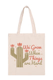 Find strength and inspiration in our WE GROW WHEN THINGS ARE HARD print minimalist fashion tote bag. Made with durable materials, it's perfect for carrying your essentials while making a statement. Embrace the challenging journey of personal growth with this stylish and functional accessory.