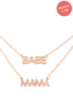 This layered necklace set features a 14" "MINI" necklace and a 16" "MAMA" necklace. Add some style to your outfit with this unique set that can be worn together or separately. Perfect for everyday wear or special occasions.