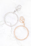 Never lose or misplace your keys again when you have this bedazzled keyring that's cute and shining all together! Sure to add feminine flair to your set with multi-faceted rhinestones, the color of your choice. Easy to grab and get on your way.