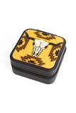 Organize and protect your precious jewelry while traveling with our Aztec Pattern Bull Head Leather Travel Jewelry Box. Beautifully decorated with an eye-catching bull head design, this box is made of durable leather to keep your accessories safe. Perfect for any adventurer or fashionista on the go.