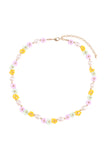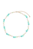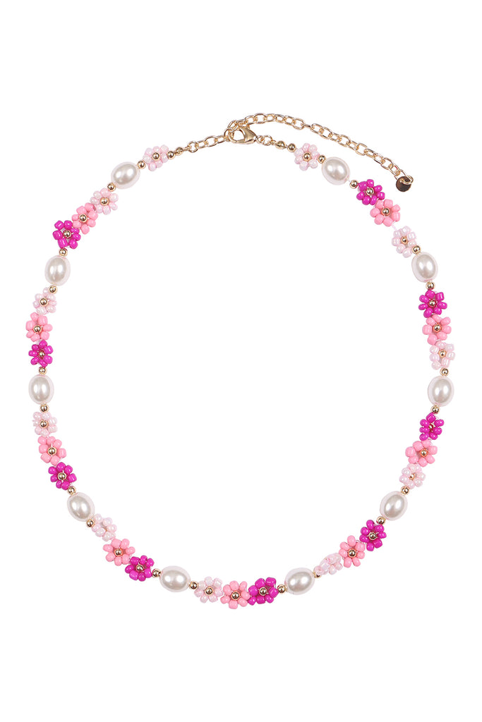 Look fashionable wearing this quirky brass pearl flower seed bead necklace. Crafted with brass, pearls, and flower-shaped seed beads, this one-of-a-kind necklace is sure to be a conversation starter. Wear it and be remembered!