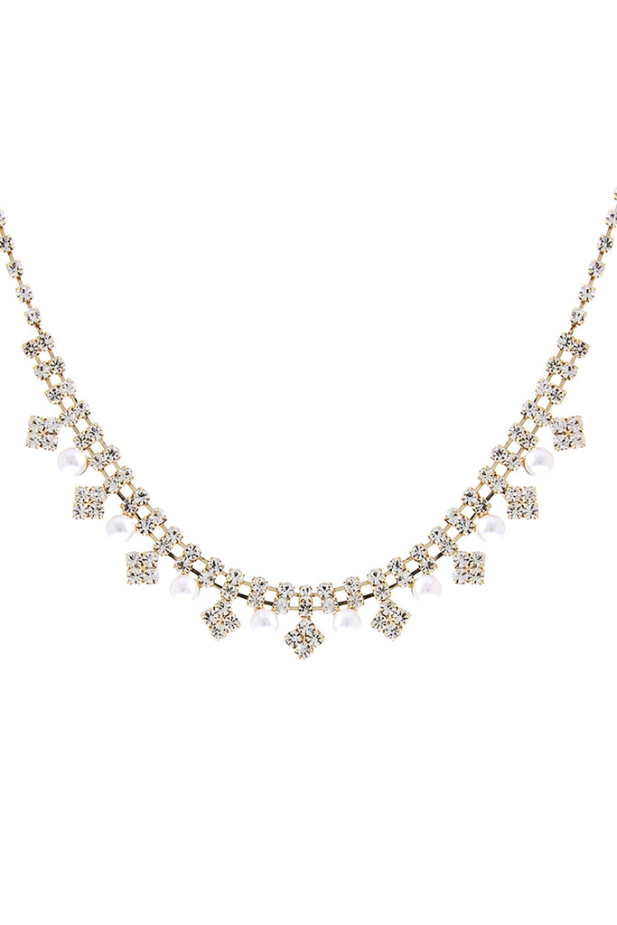 Make a statement on your wedding day with this stunning bridal pearl rhinestone necklace. These glimmering gems will put some sparkle in to your walk down the aisle! Add a special shine to your ensemble and make your day even more extraordinary.